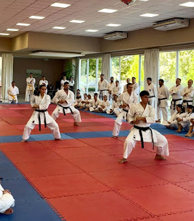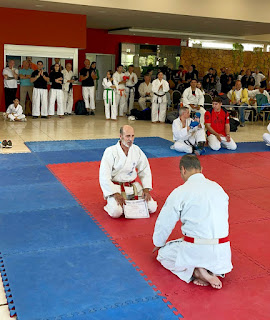 Por la tarde, se llevaron a cabo exhibiciones de Karate Tradicional y Kobudo, seguidas por exámenes para ascensos en Karate: